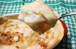 3) ミートソース、白菜の芯、ホワイトソースの順番で器に並べ、
