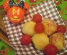 1) ジャガイモとひき肉を混ぜて、中にチーズを入れる